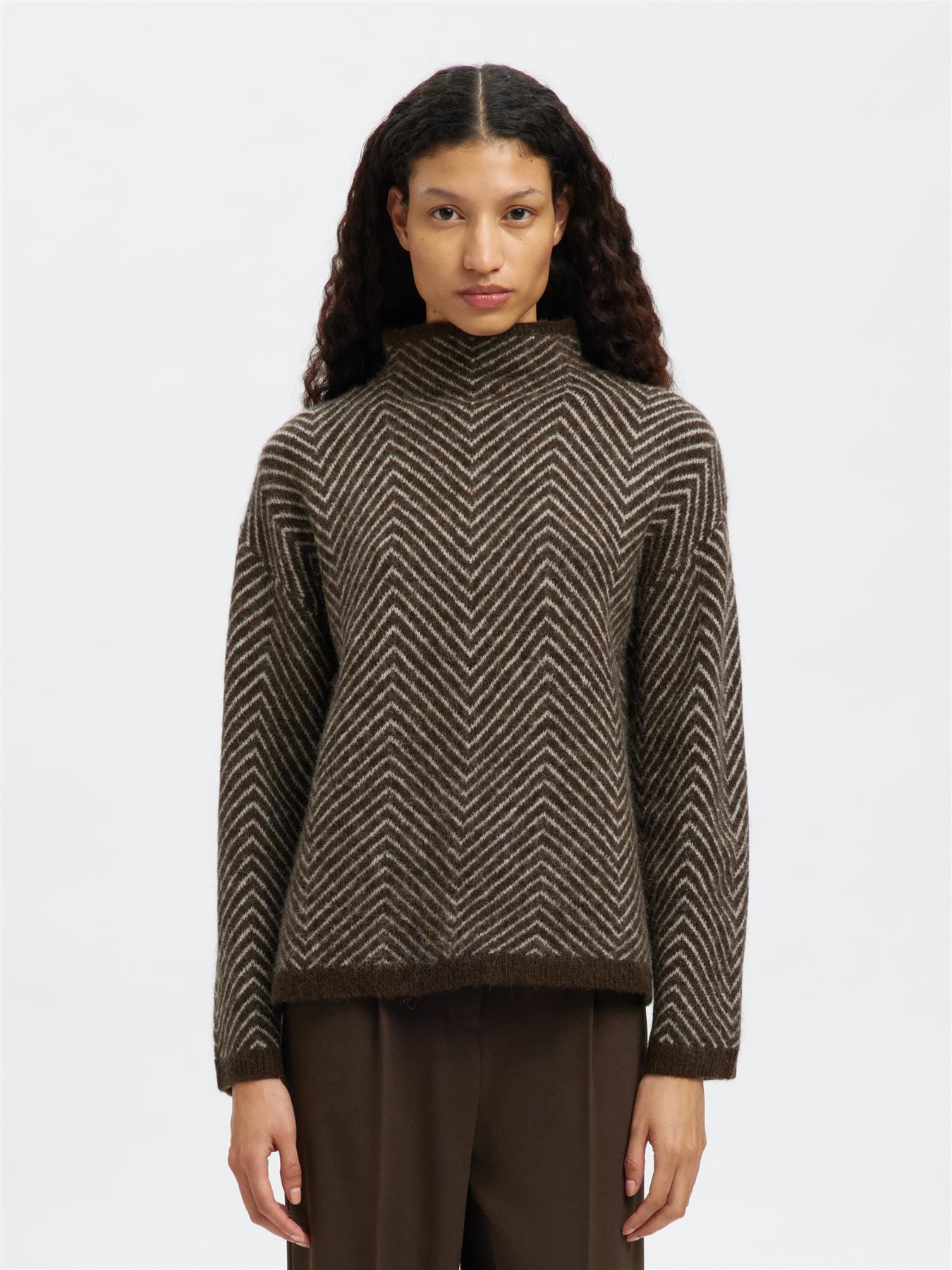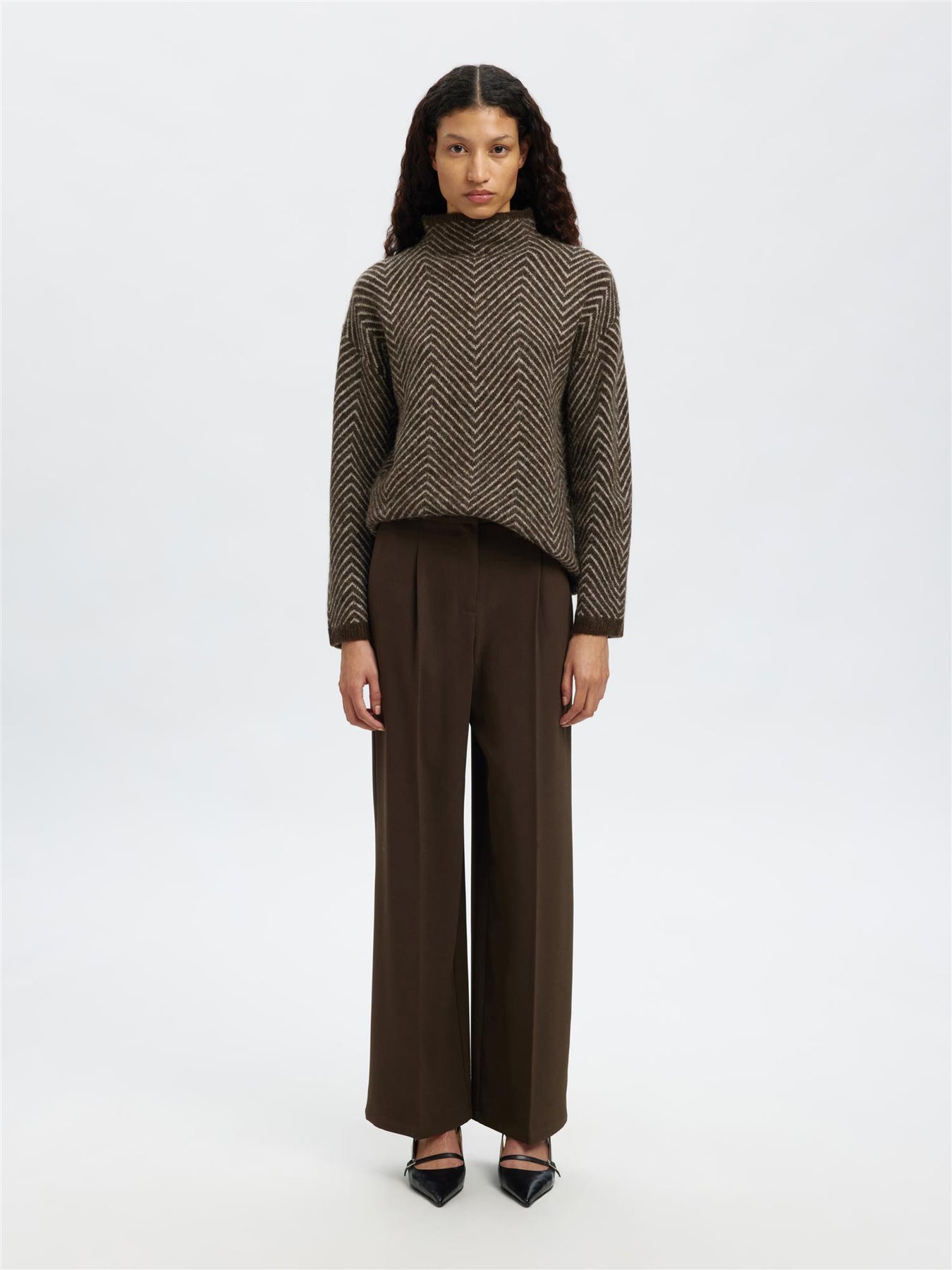 Flott strikket genser fra Selected Femme i fiskebeins mønster med turtle neck og i en litt løs passform.