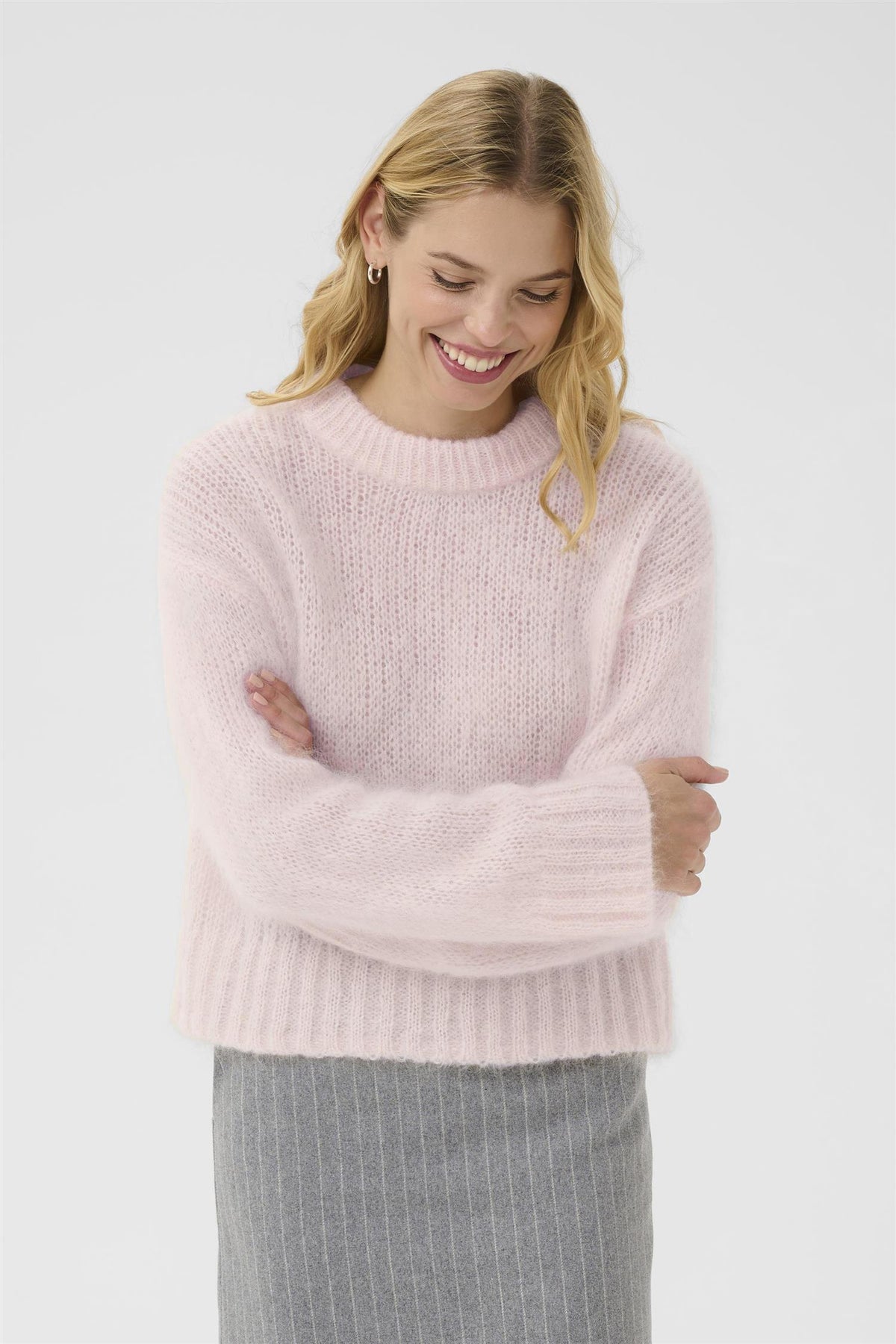 Lett og løststrikket genser fra Part Two i deilig mohairkvalitet. Rund hals, boxy fit og dekorative vrangborder.