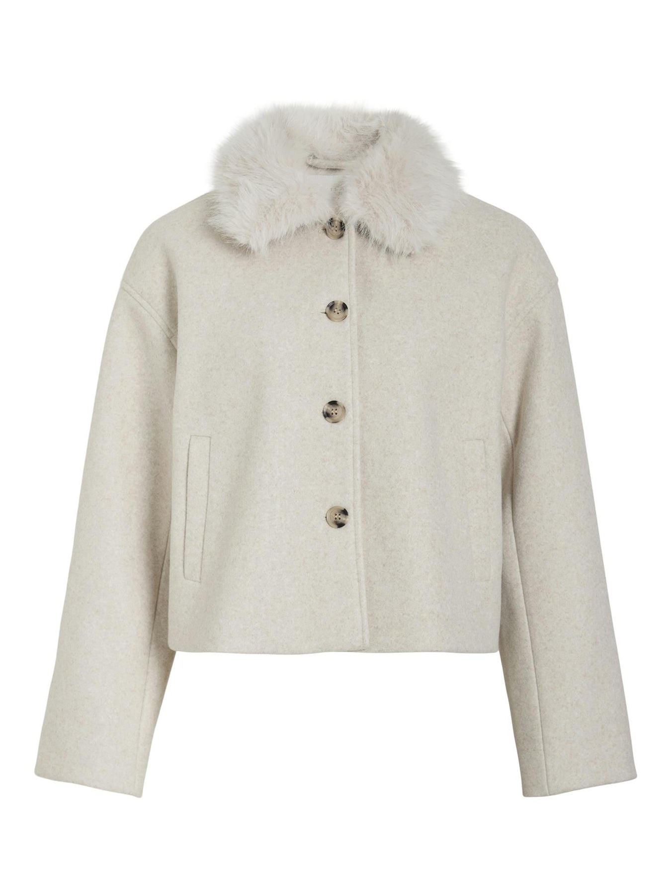 Fin høstjakke fra Vila i en kort modell med avtagbar pels på kragen. Lukkes med knapper.
