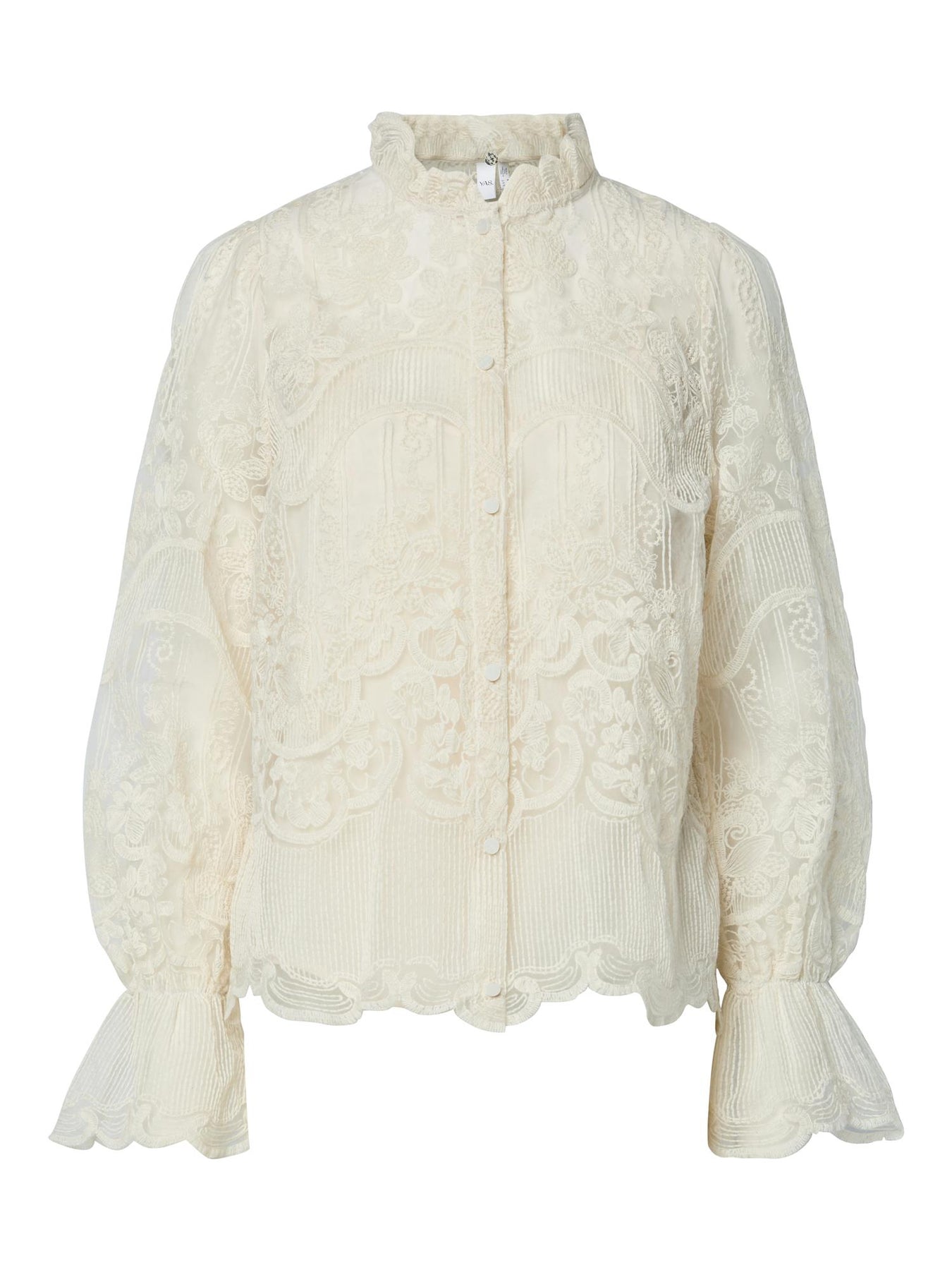 Lekker blondbluse fra YAS med singlett inni og strikk nederst på ermer.